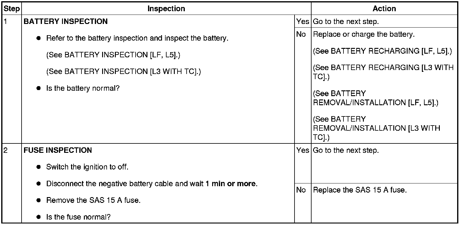 - When DTCs not shown in the DTC table are displayed, perform the inspection for DTCs not shown in the DTC table.