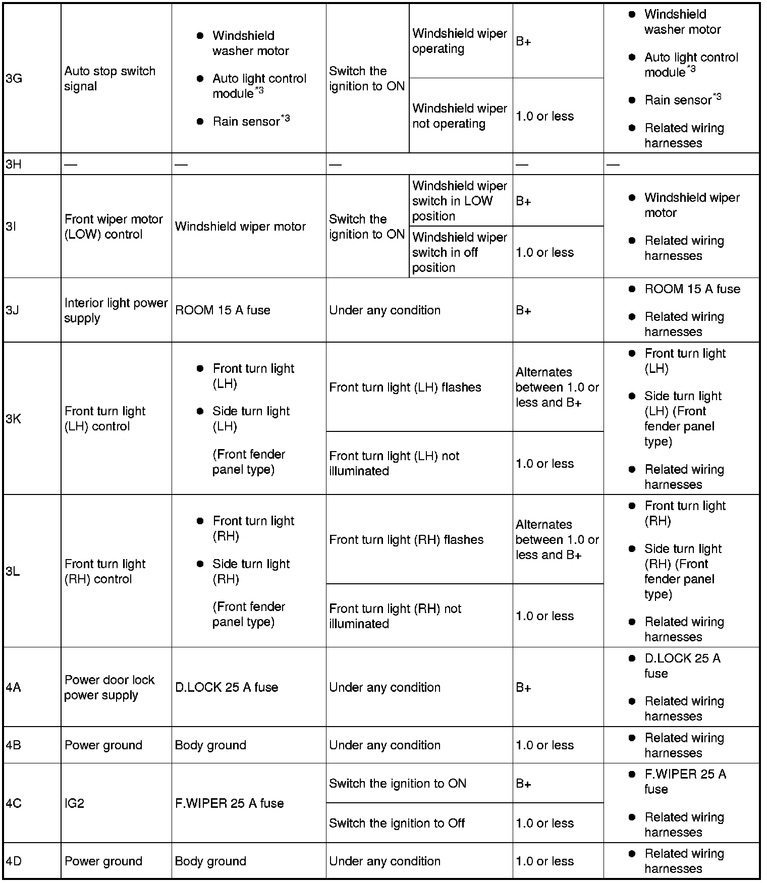 - Rear door switch (RH) signal: 6K (+) -> body ground (-)