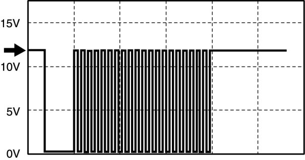 - Oscilloscope setting: 5 V/DIV (Y): 5 s/DIV (X), DC range