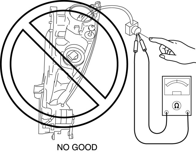 - When the light switch is on, approx. 25,000 V of high voltage passes through the discharge headlight bulb socket. Because of the danger of electrical shock, do not insert fingers or a tester.
