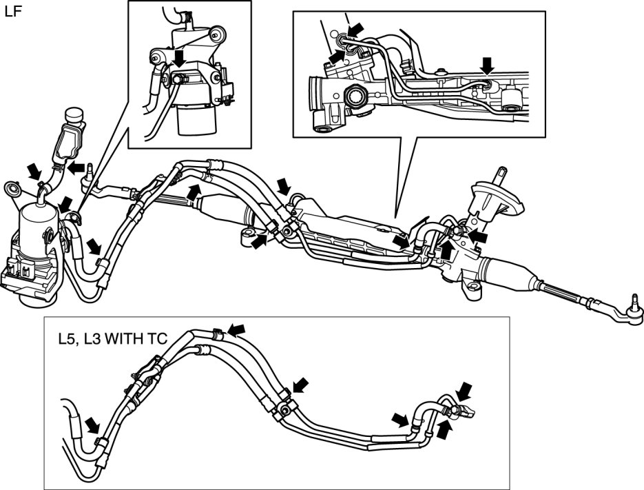 3. Inspect for the fluid leakage at the points indicated in the figure.