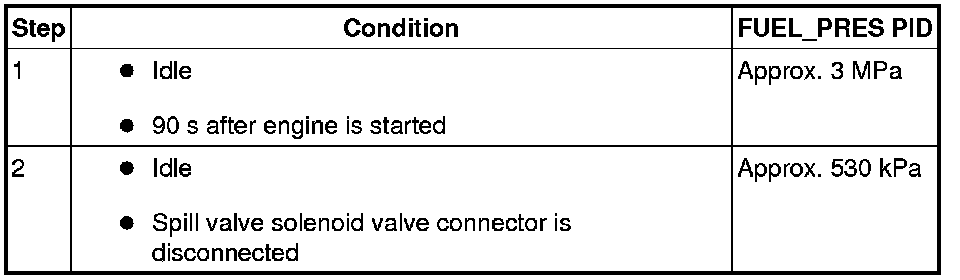 4. After warming up the engine, verify that the FUEL_PRES PID is at the standard value under the following conditions.