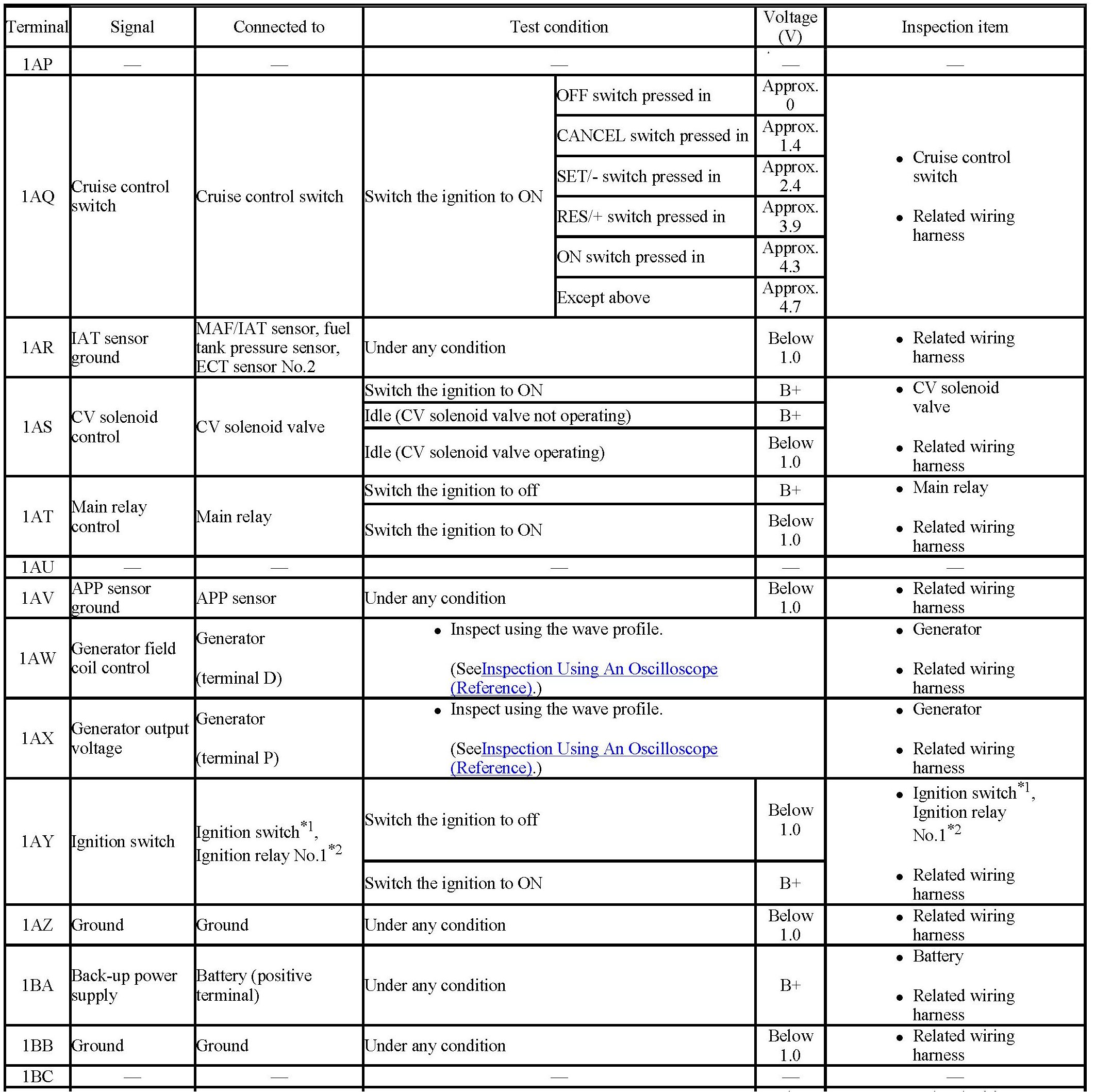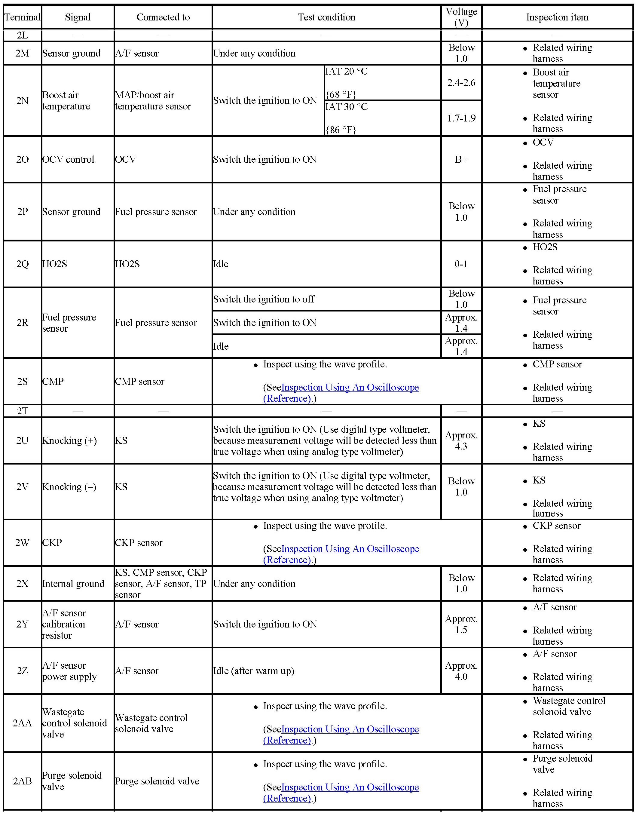 PCM terminal voltage table (Reference)