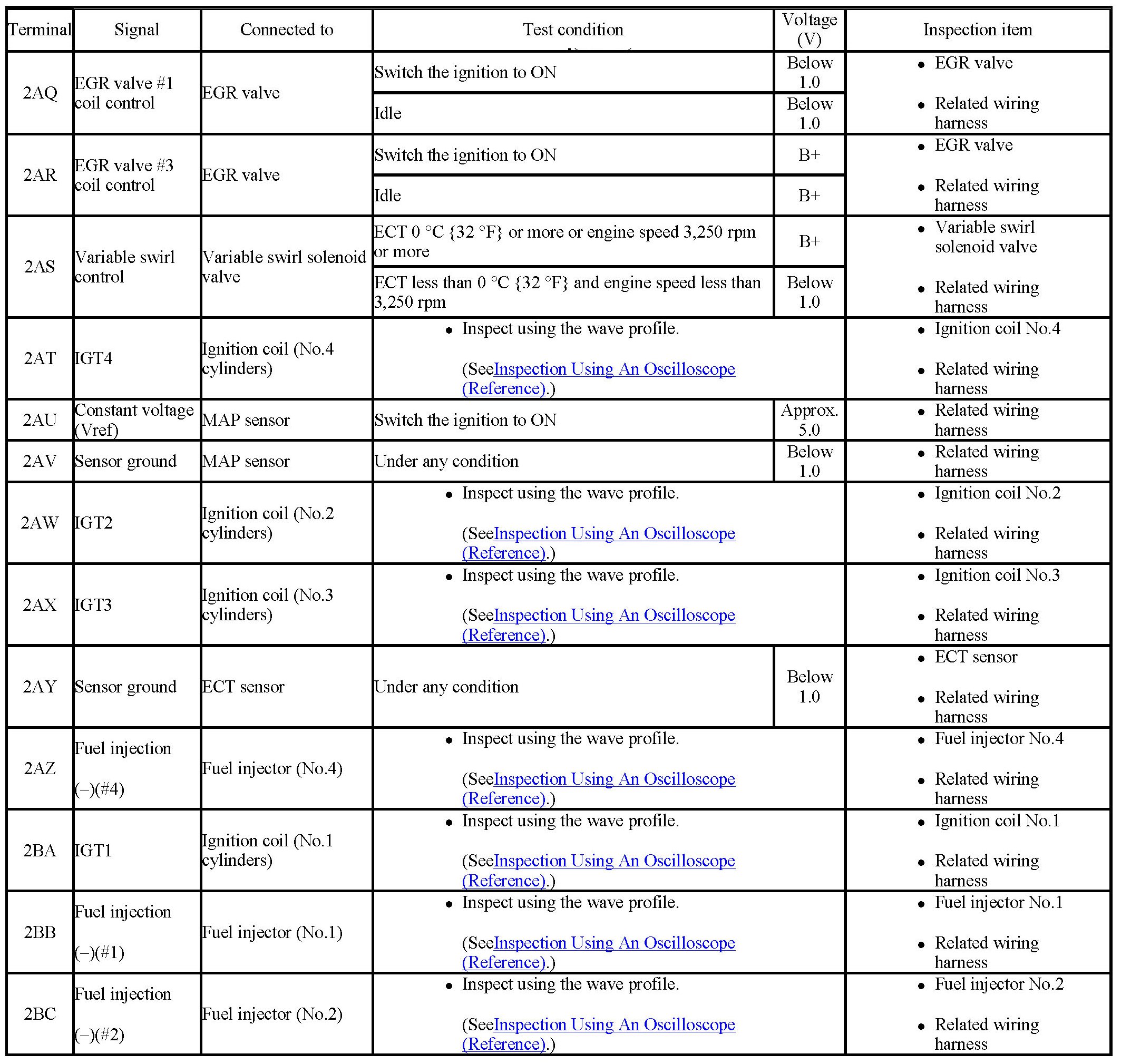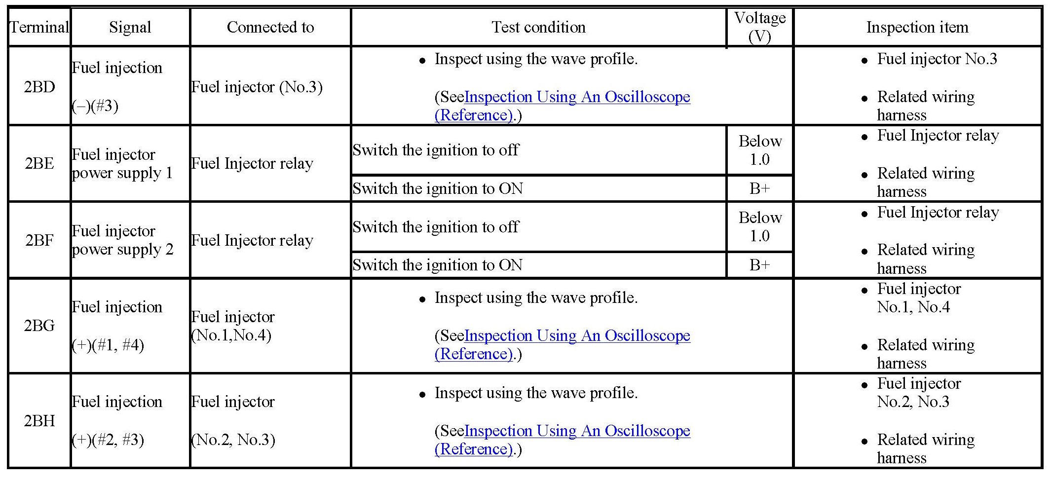 - Fuel injection No.2, No.3: 2BH (+)-->body ground (-)