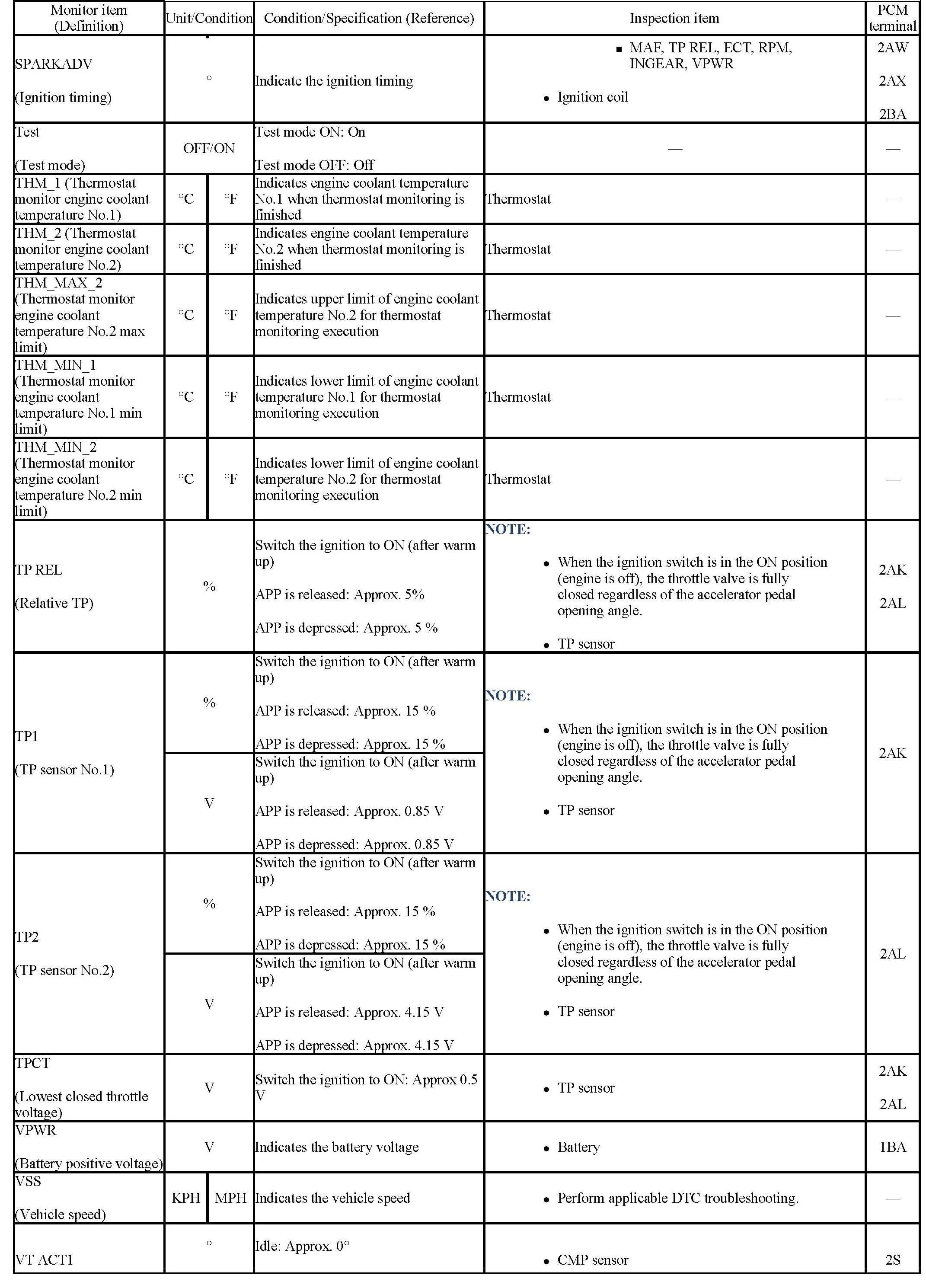 - The PCM terminal voltage can vary with the conditions when measuring and changes due to aged deterioration on the vehicle, causing false diagnosis. Therefore determine comprehensively where the malfunction occurs among the input systems, output systems, and the PCM.