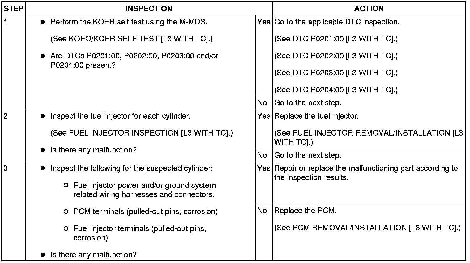 - This inspection has to be performed after the Fuel Injector Operation Inspection.