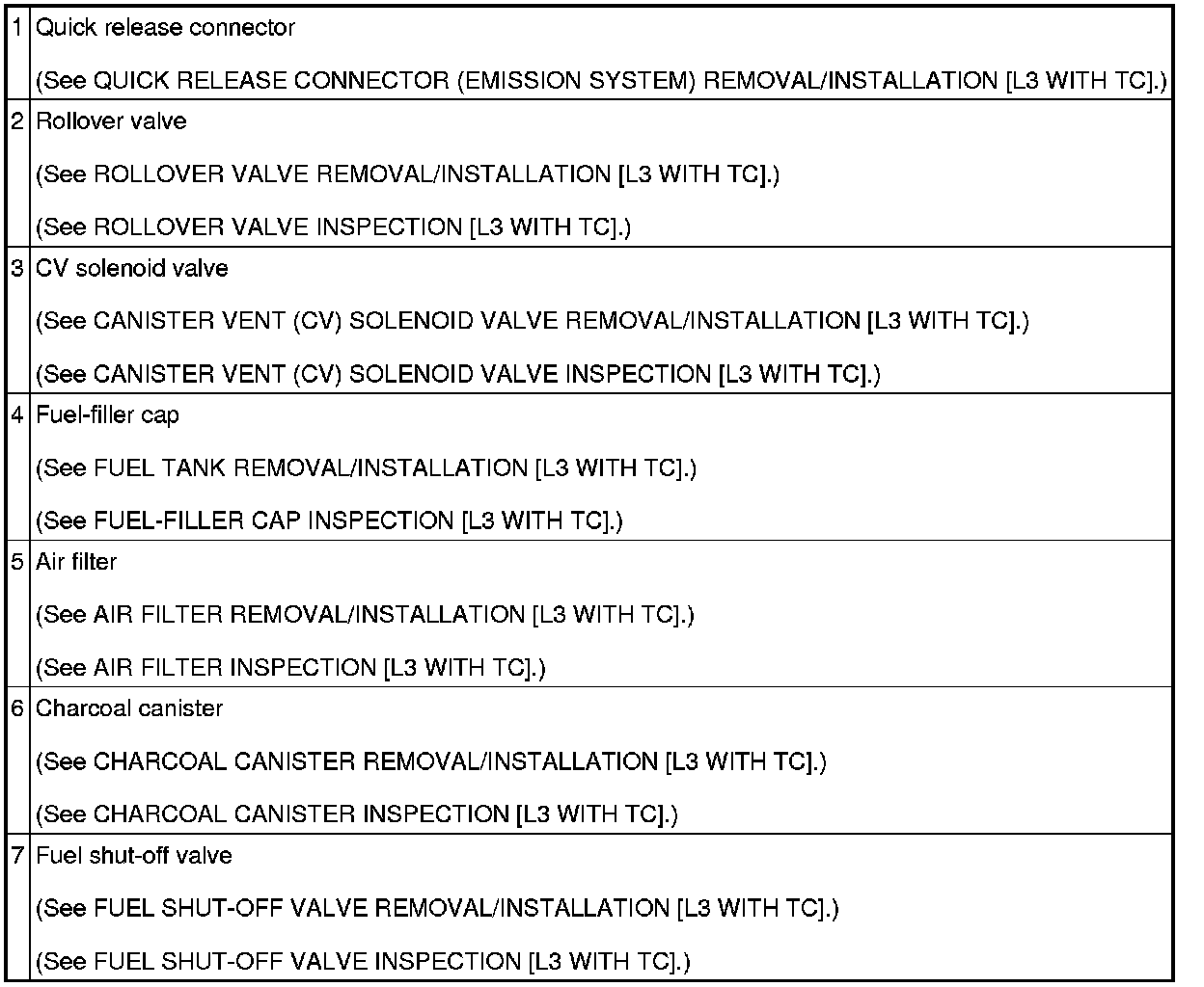 EMISSION SYSTEM LOCATION INDEX [L3 WITH TC]