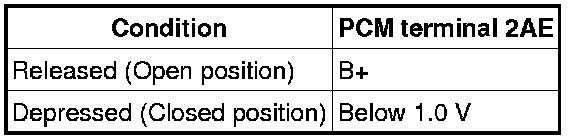 2. Verify that the PCM terminal 2AE voltage is as shown in the following table when the variable swirl shutter valve actuator rod is depressed and released by hand.
