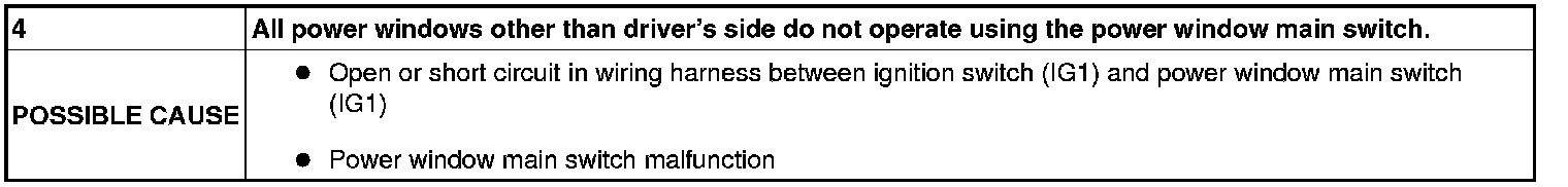 No. 4 All Power Windows Other Than Driver's Side Do Not Operate Using The Power Window Main Switch