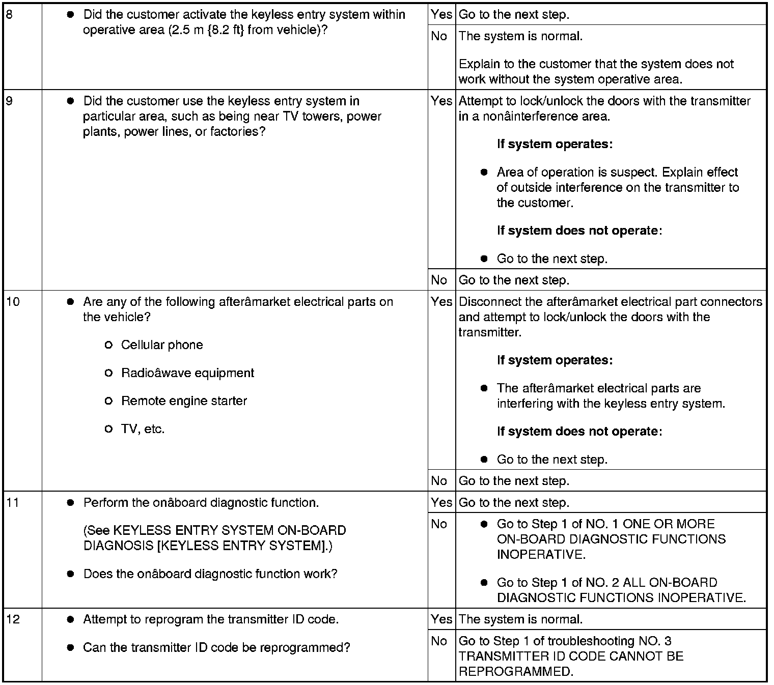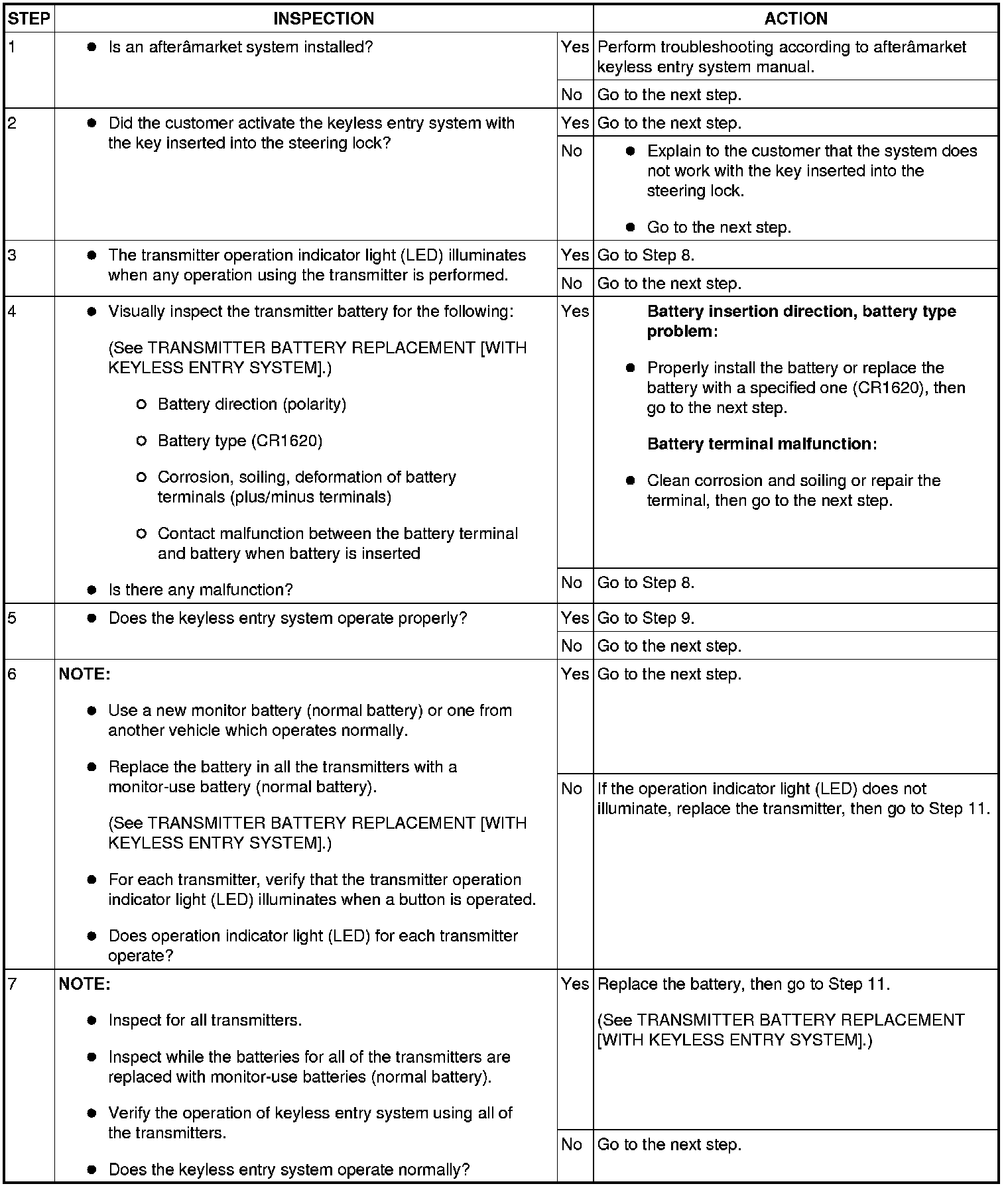 KEYLESS ENTRY SYSTEM PRELIMINARY INSPECTION [KEYLESS ENTRY SYSTEM]