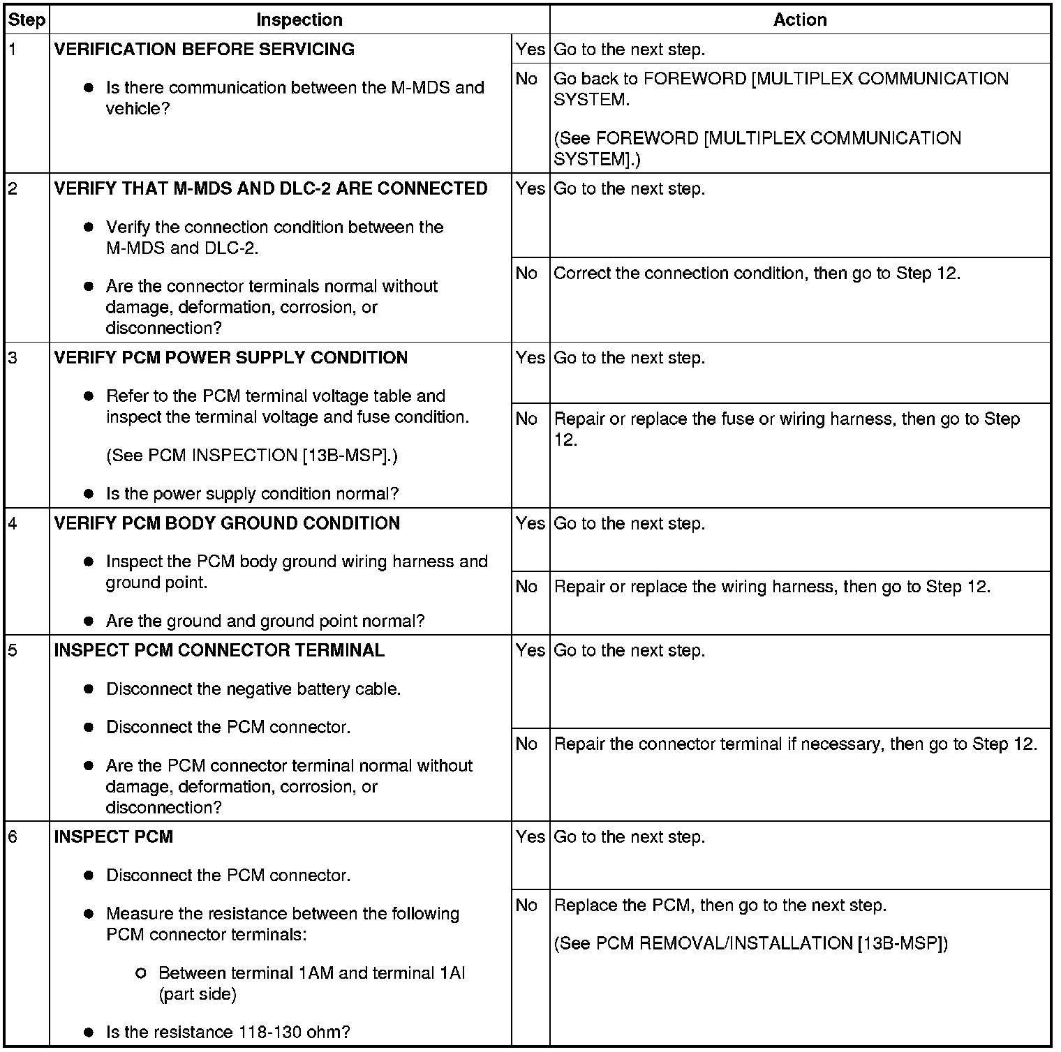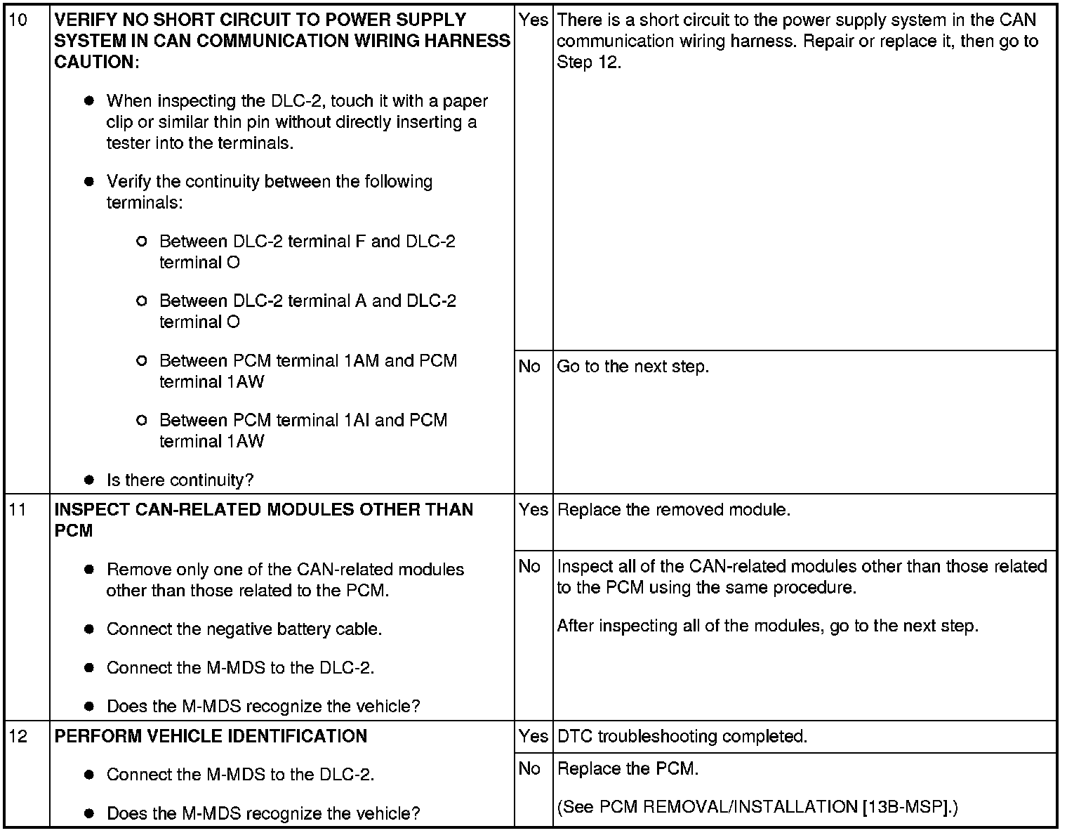 - Possible causes of communication errors between the M-MDS and vehicle include communication circuit interruption due to an open circuit in the CAN communication wiring harness, or poor contact of connector terminals, or a BUS OFF condition due to a short circuit in the CAN communication wiring harness.