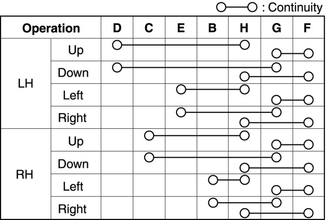 Inspect for continuity between the power outer mirror switch terminals using an ohmmeter.