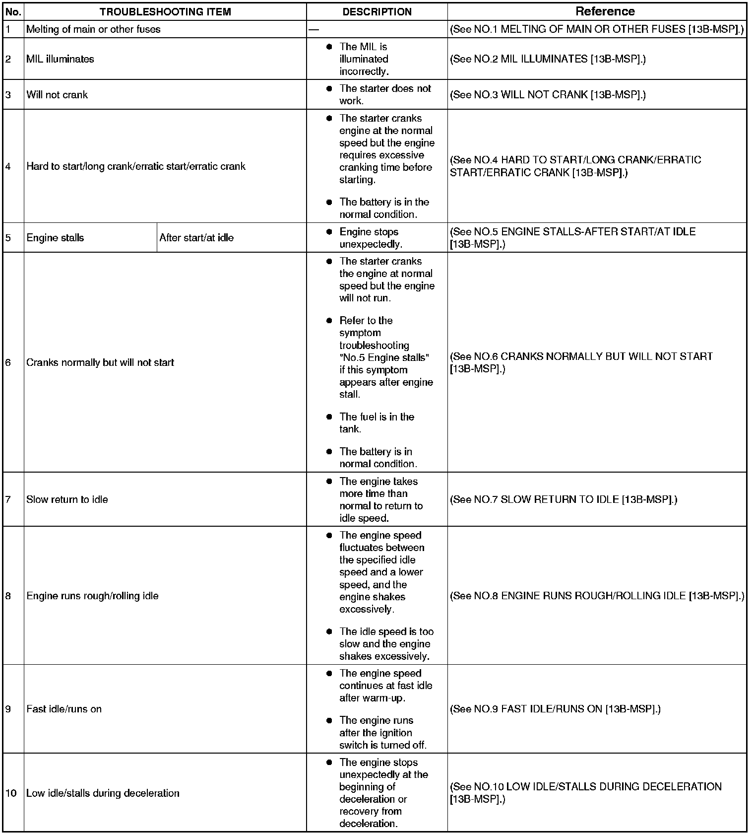 SYMPTOM DIAGNOSTIC INDEX [13B-MSP]