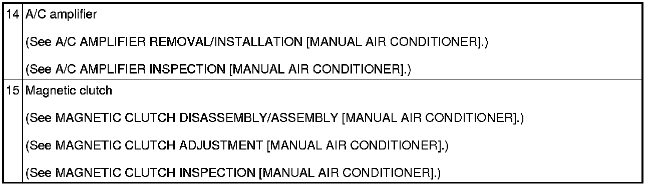 HVAC CONTROL SYSTEM LOCATION INDEX [MANUAL AIR CONDITIONER]
