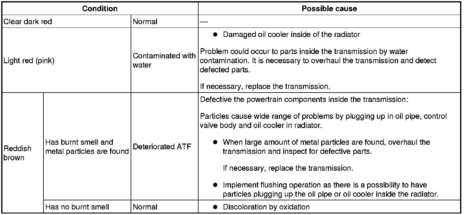 1. Inspect the ATF for the following to determine whether the transmission should be disassembled.