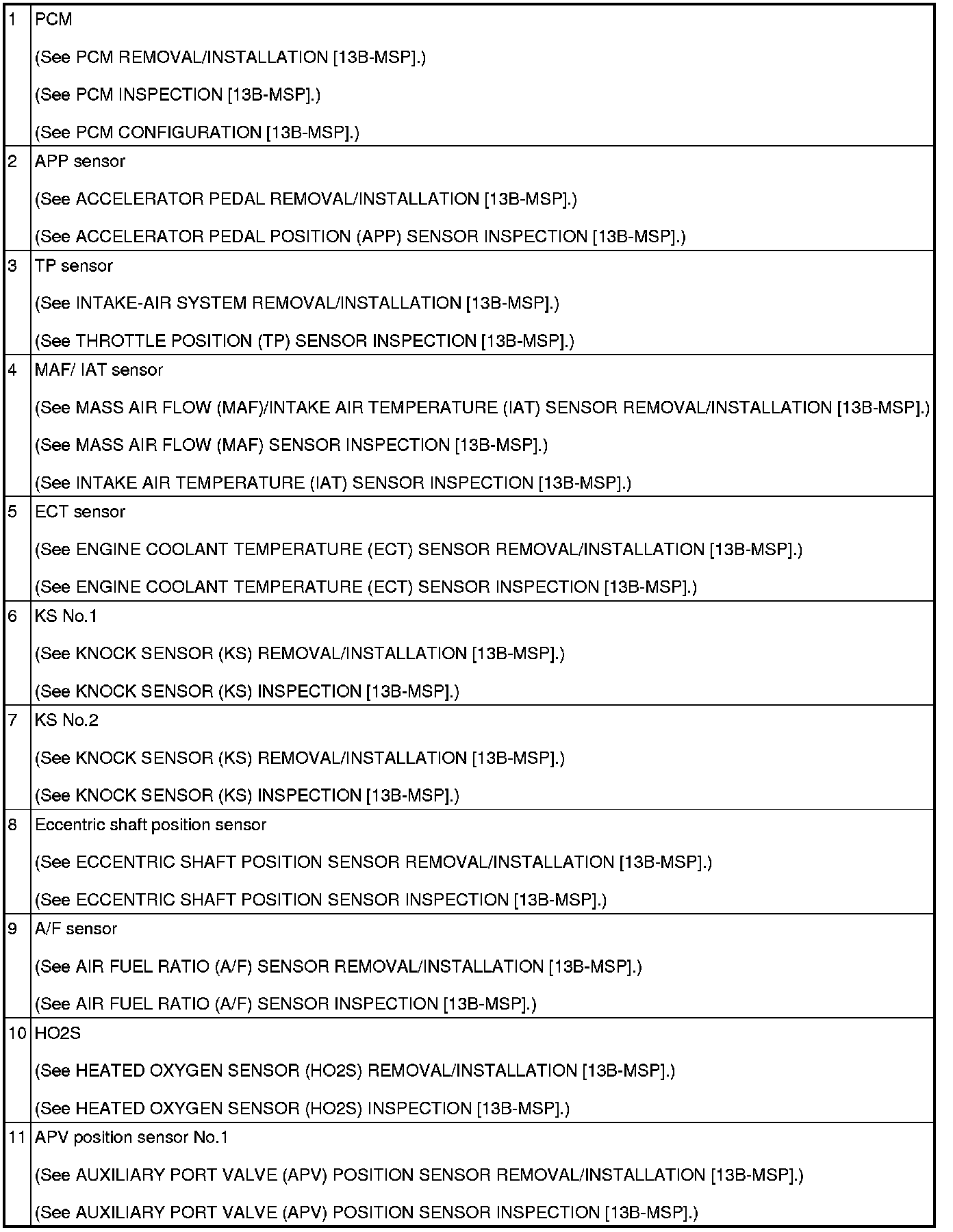 CONTROL SYSTEM LOCATION INDEX [13B-MSP]