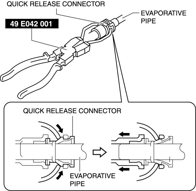 - A checker tab is integrated with the quick release connector for new evaporative hoses. Remove the checker tab from the quick release connector after the connector is completely engaged with the pipe.