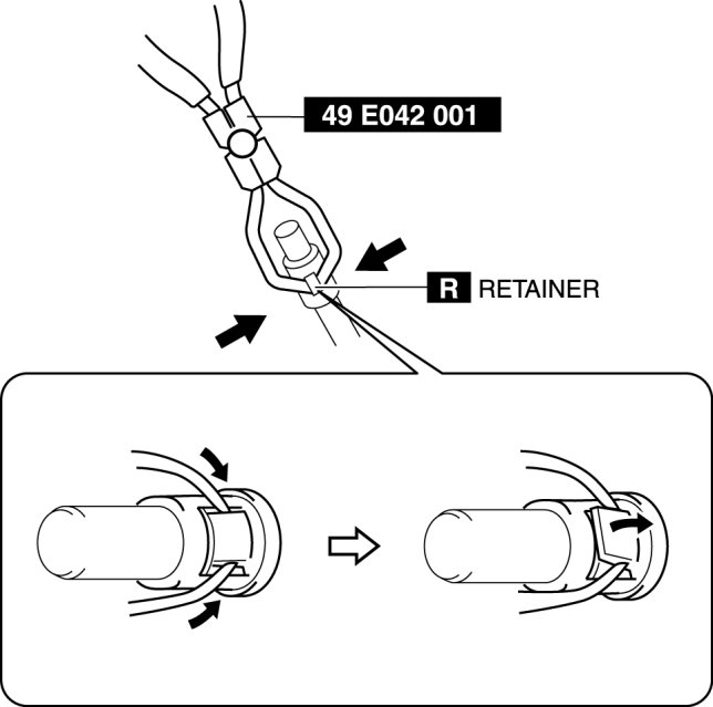 - Always replace the retainer with a new one when using SST 49 E042 001, otherwise, evaporative leakage could result.