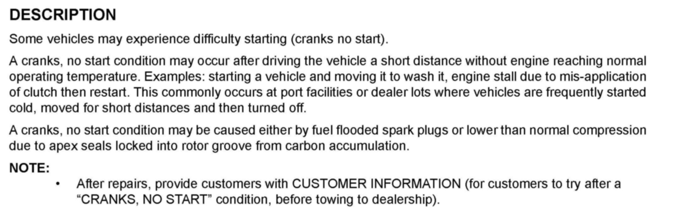 Subject: ENGINE CRANKS NO START