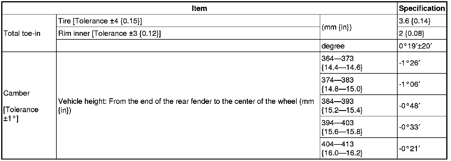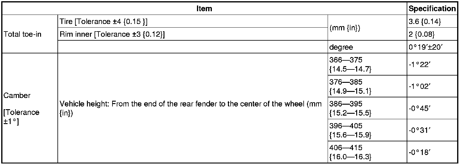- Difference between the left and right camber angle is within 1°.