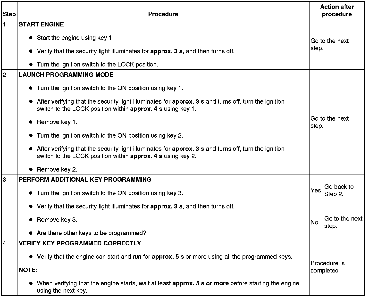 - This procedure is performed for disabling the No.1 Additional Key Programming Procedure (Using Two Valid Keys).