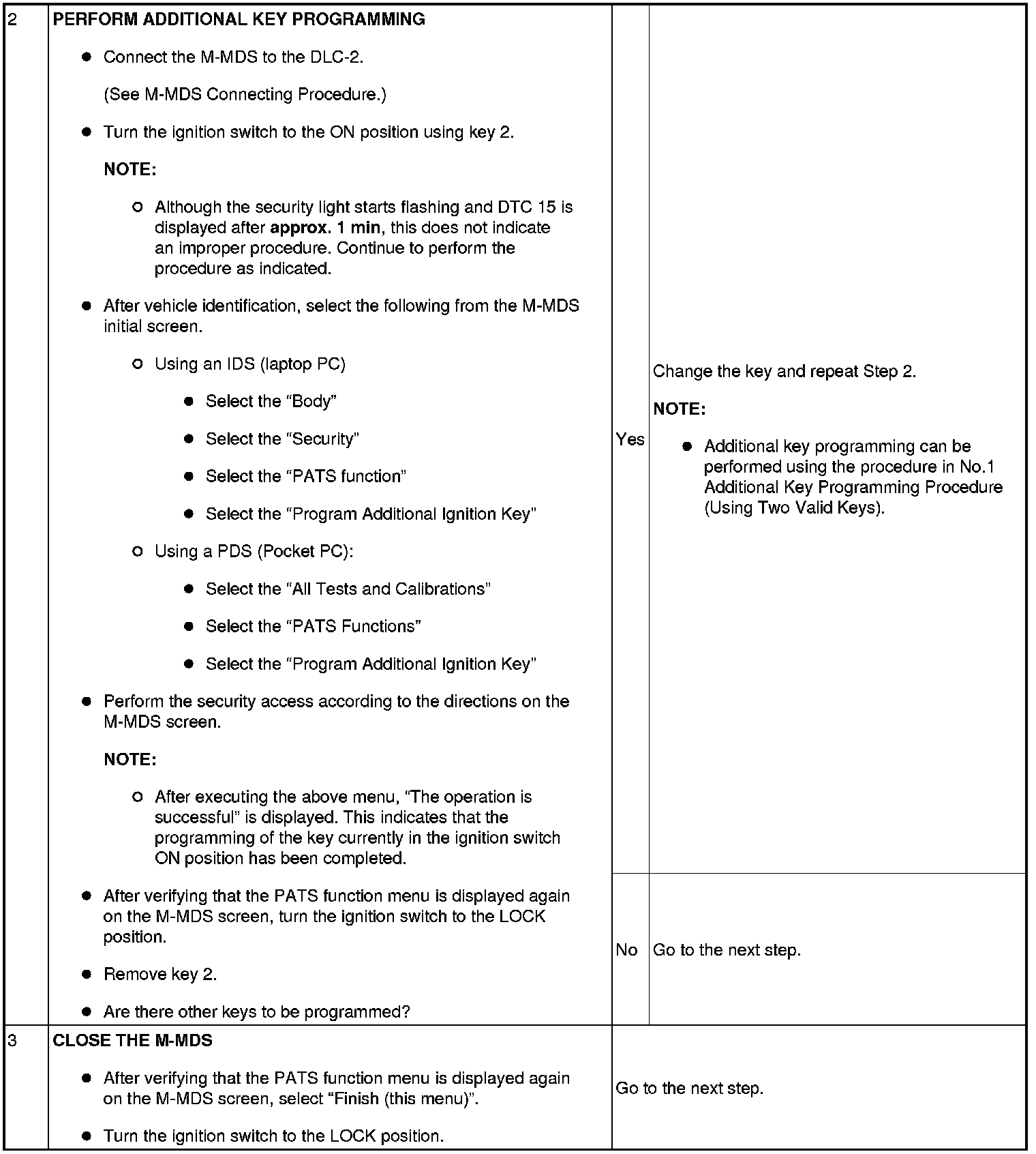 - If a key ID number cannot be programmed and DTC 15 is displayed, the maximum number of programmed keys may have been reached. Verify the number of programmed keys using the M-MDS.