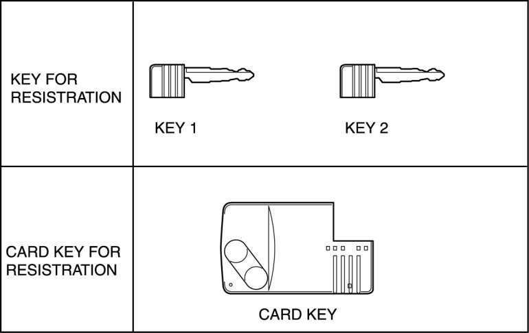 - The engine cannot be started unless an card key and two or more keys are programmed after the replacement.