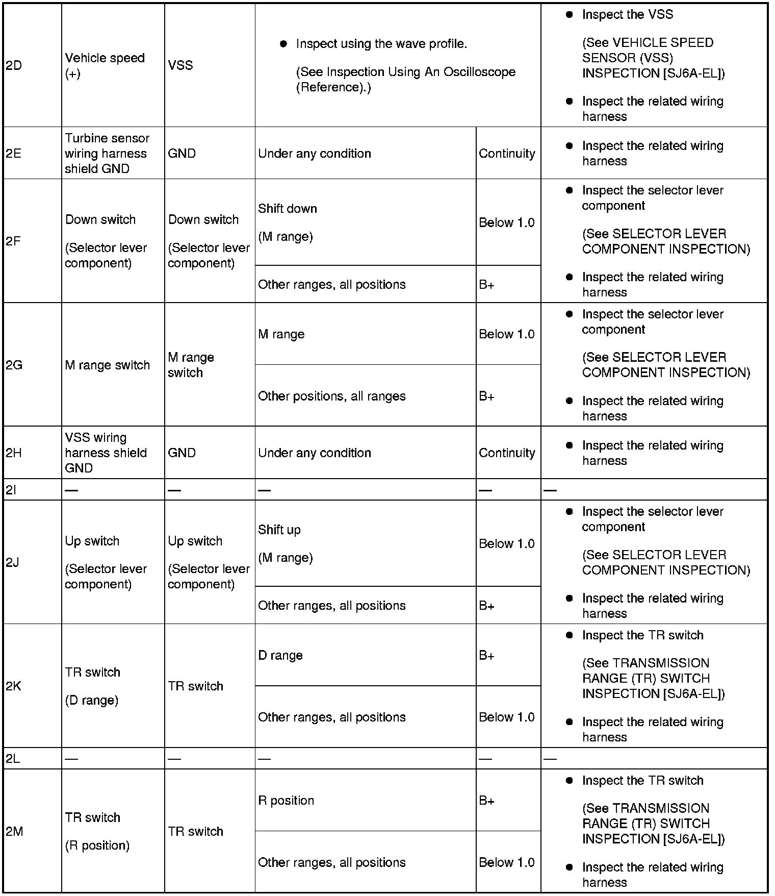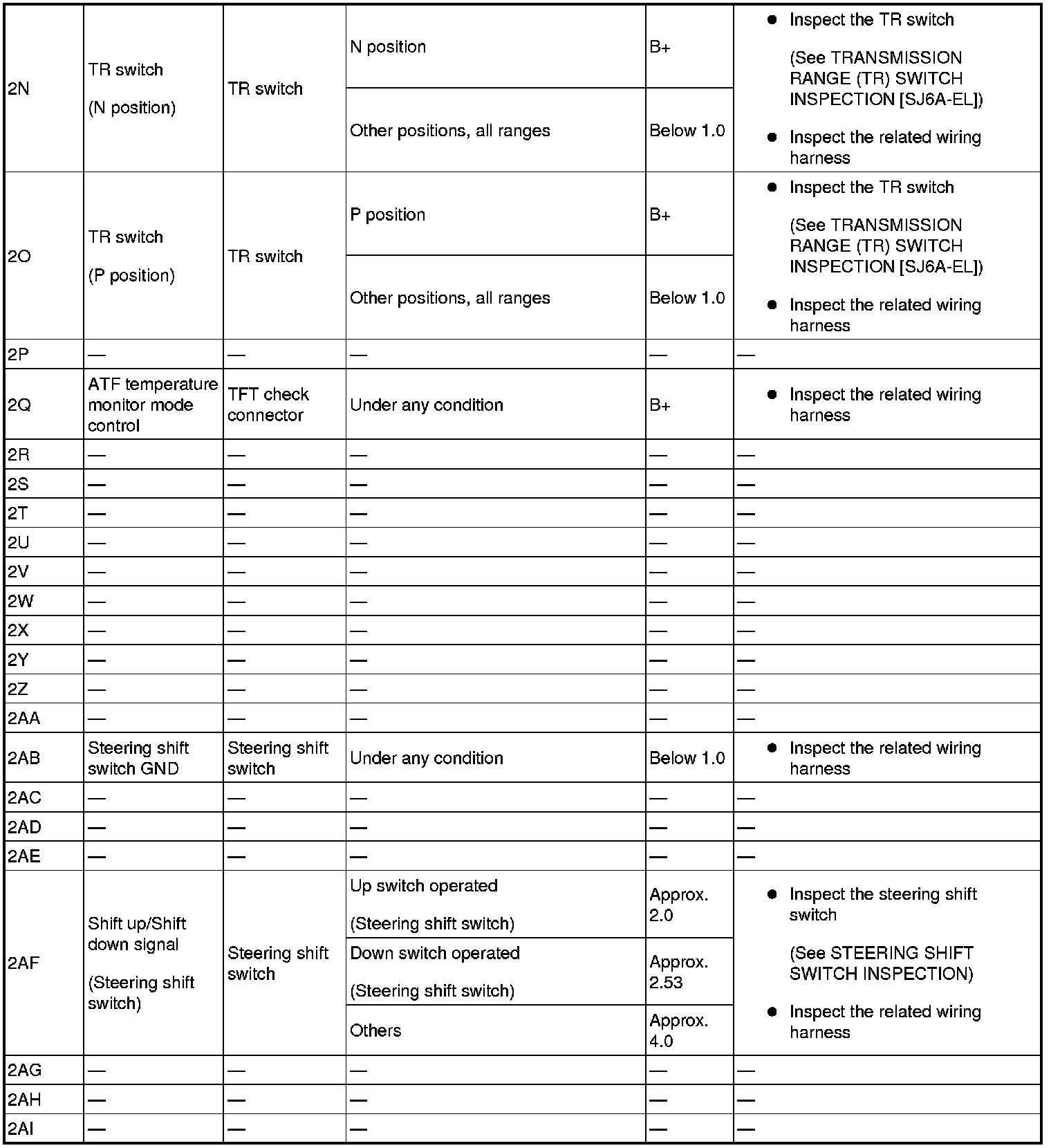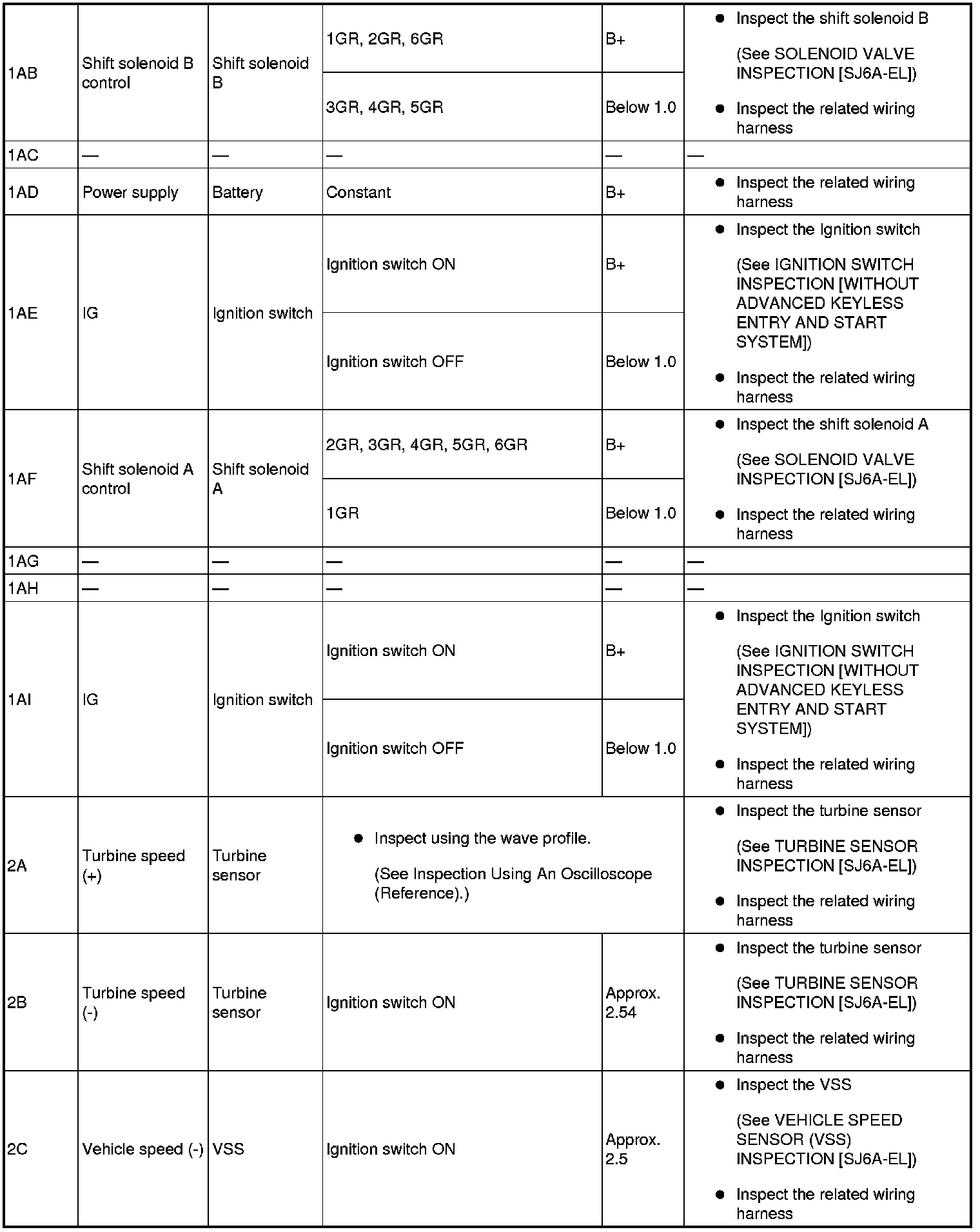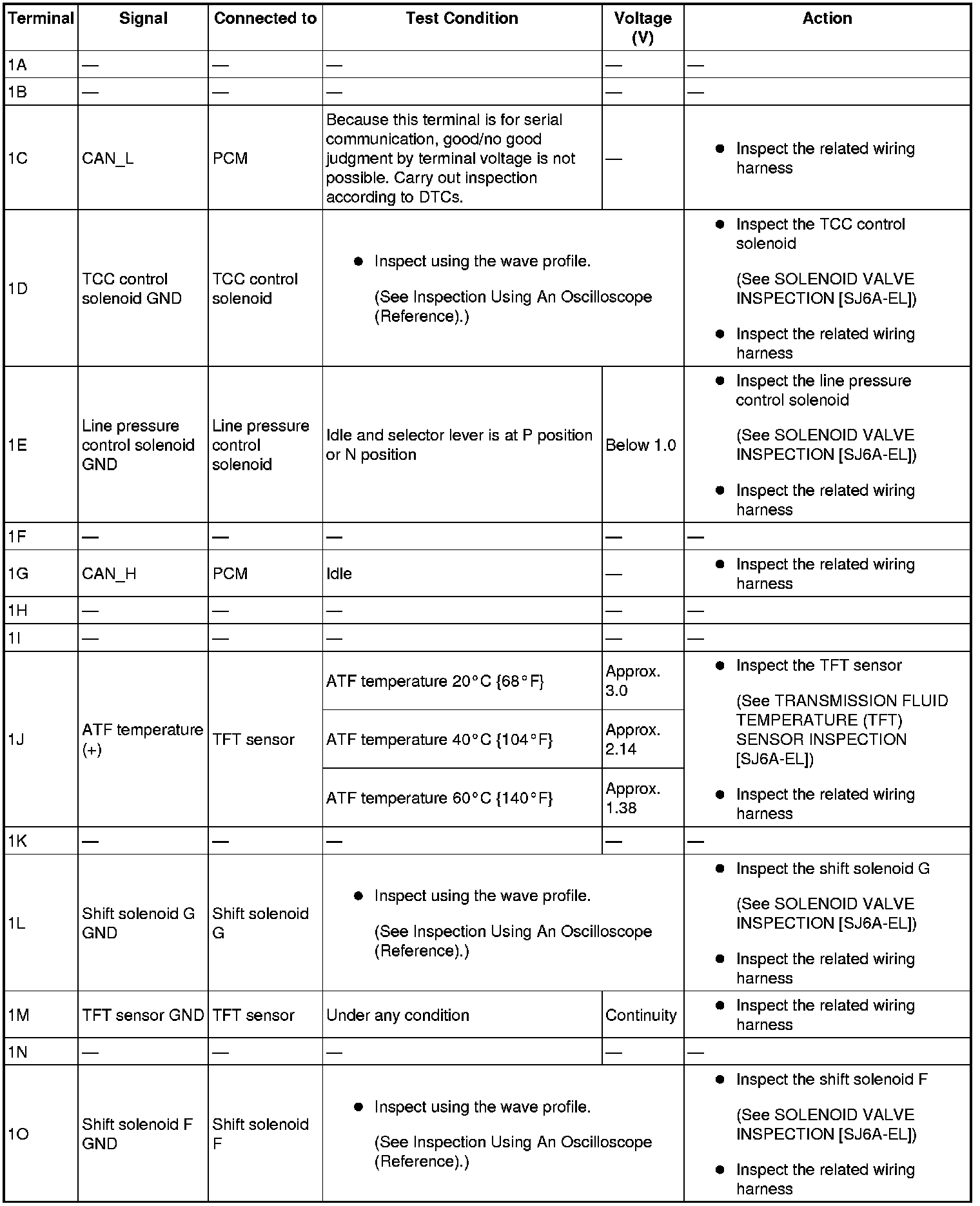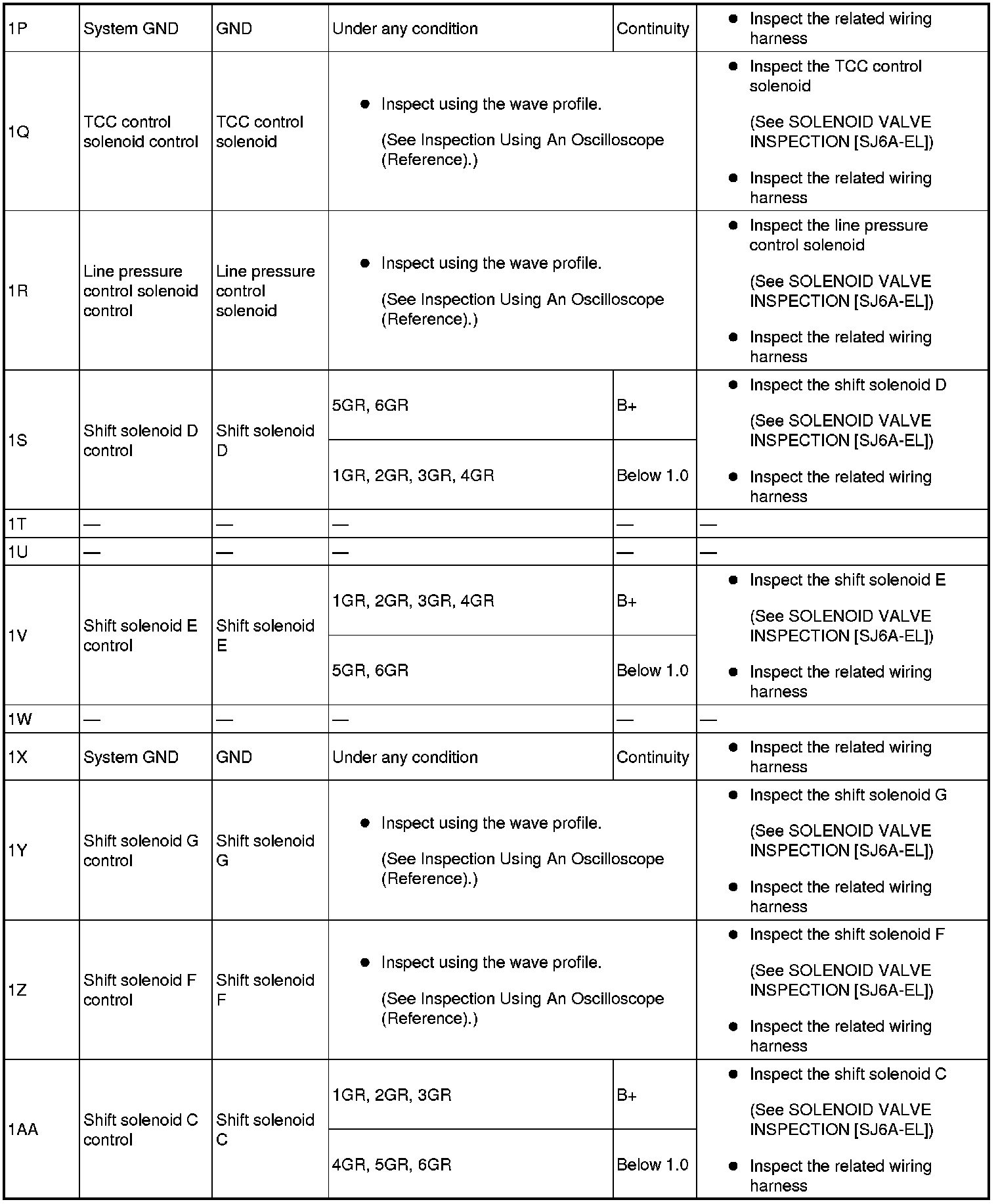 - Use the ground of terminal 1P and 1X of the TCM when measuring terminal voltage, as an error may occur when connecting the negative circuit tester to ground.