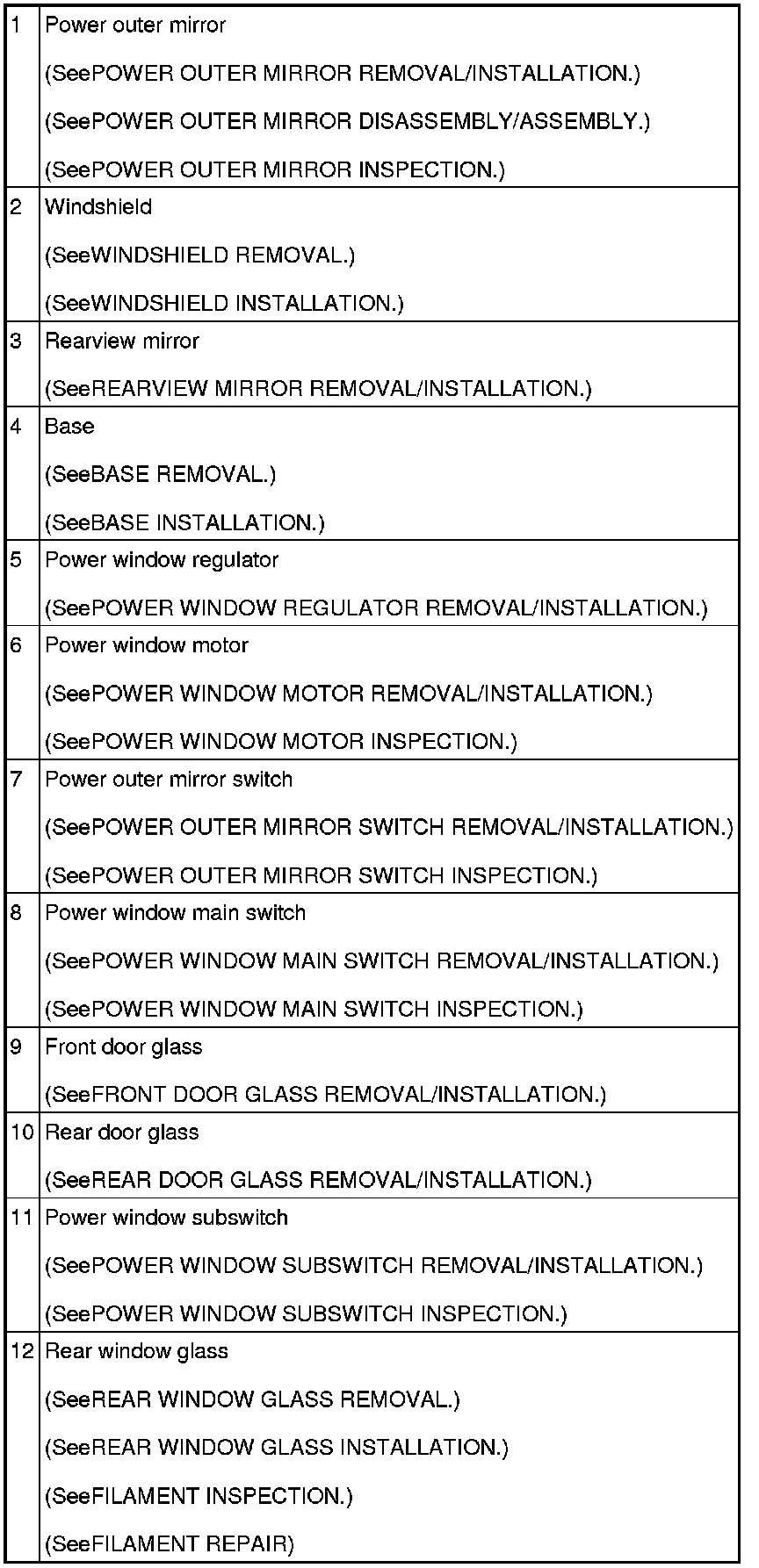 GLASS/WINDOWS/MIRRORS LOCATION INDEX
