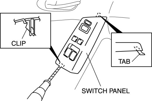 3. Remove the switch panel from the front door trim keeping the tab from catching.