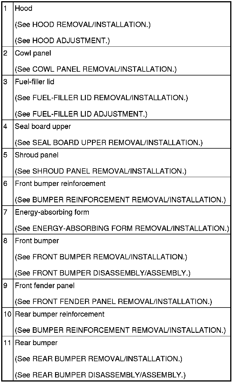 BODY PANELS LOCATION INDEX