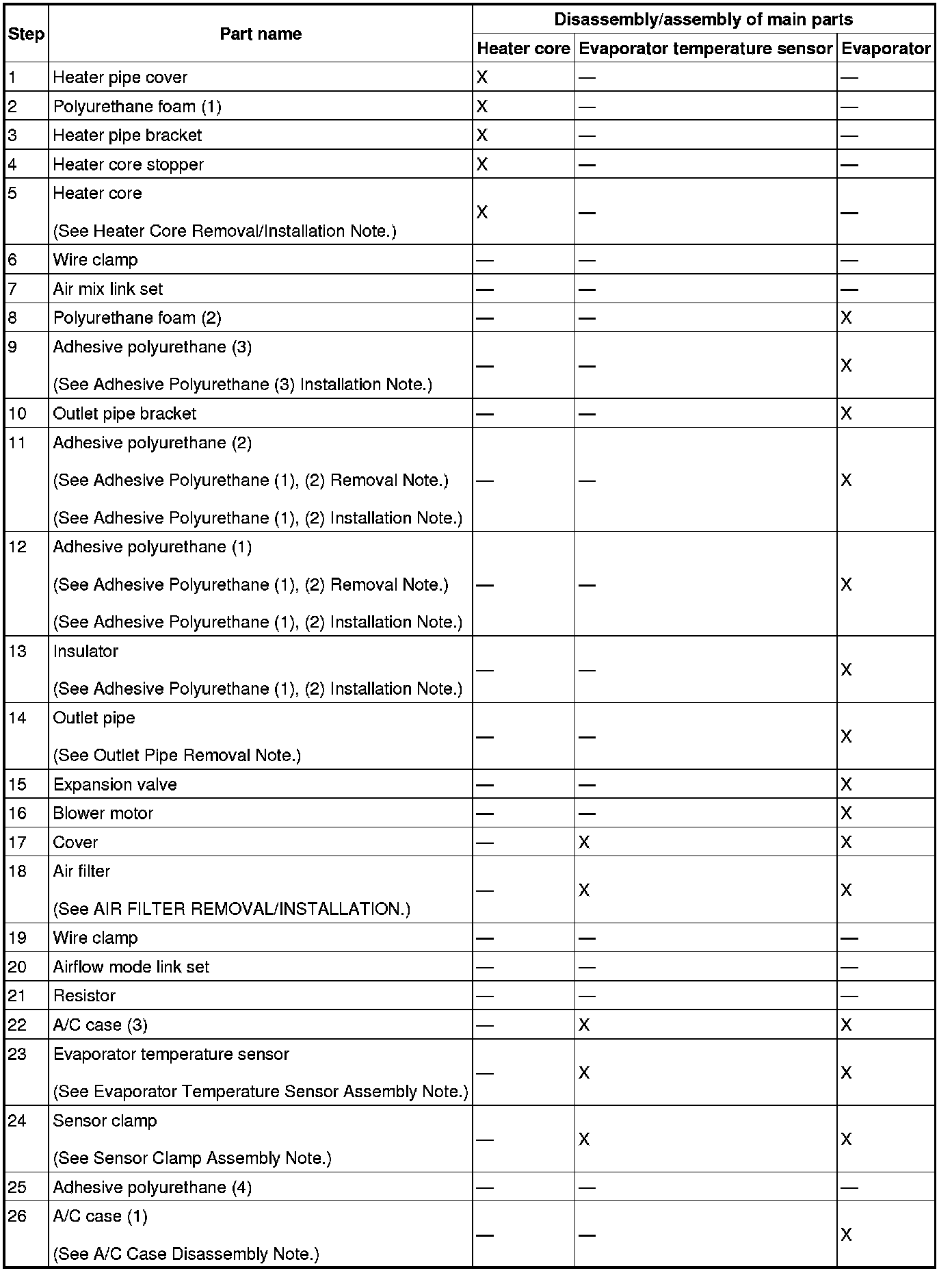 Heater Core Removal/Installation Note