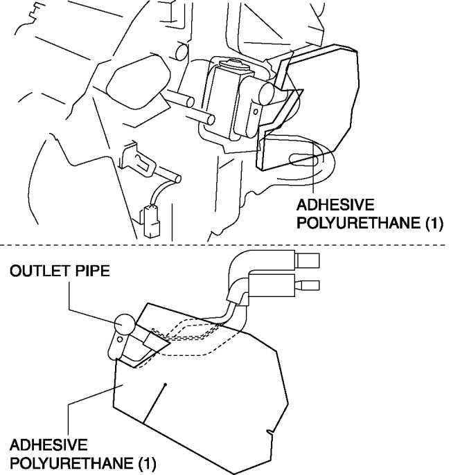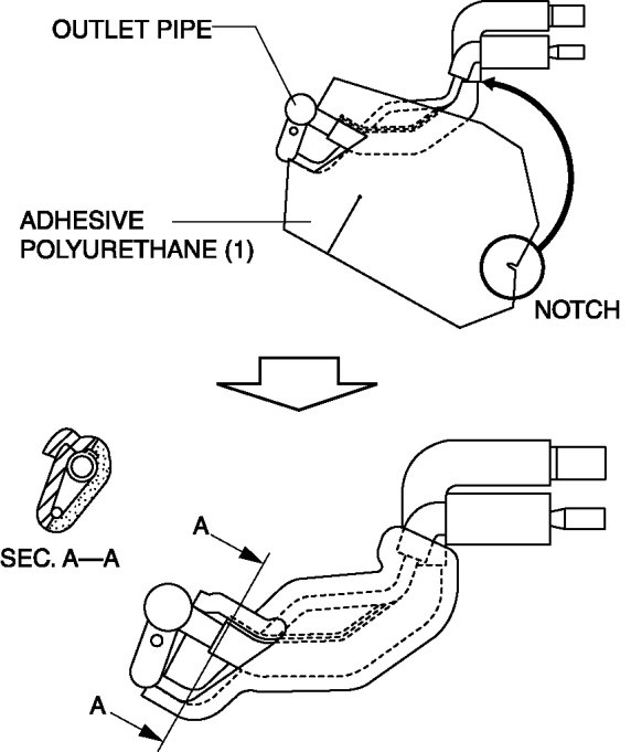 2. Attach the adhesive polyurethane (1) from the outlet pipe as shown in the figure.