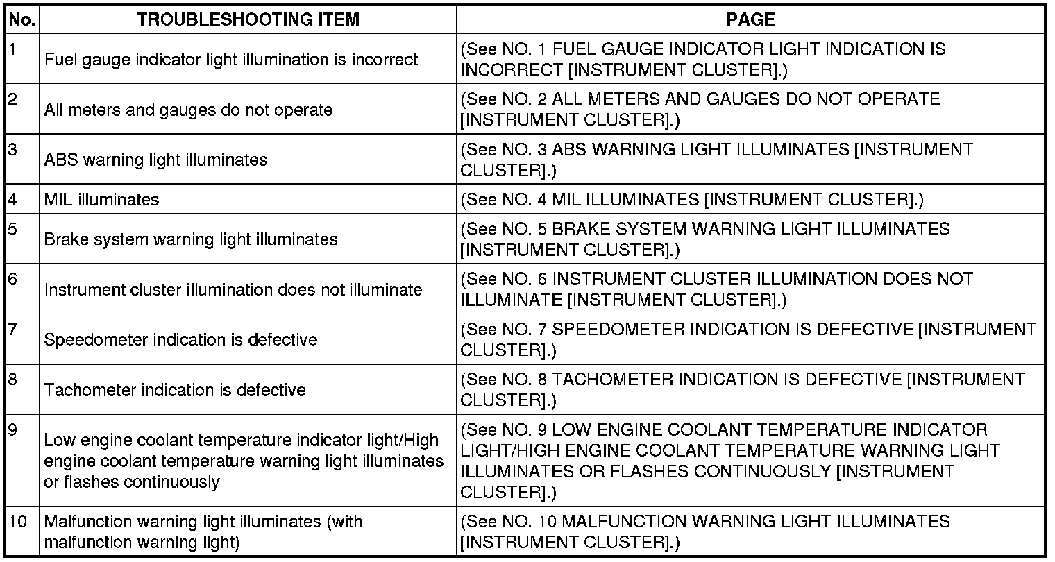 SYMPTOM TROUBLESHOOTING [INSTRUMENT CLUSTER]