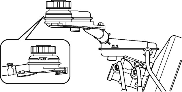 level is below the MIN mark, add brake fluid.