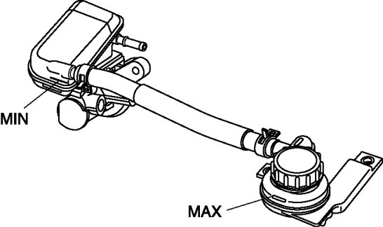 The fluid in the reserve tank must be maintained between the MIN/MAX level during replacement.