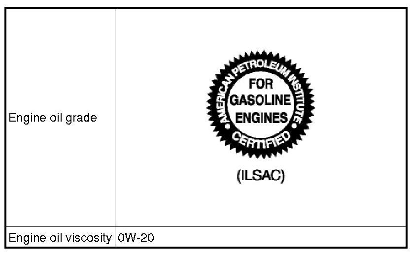 6. Refill with the following type and amount of the engine oil. Engine oil specification