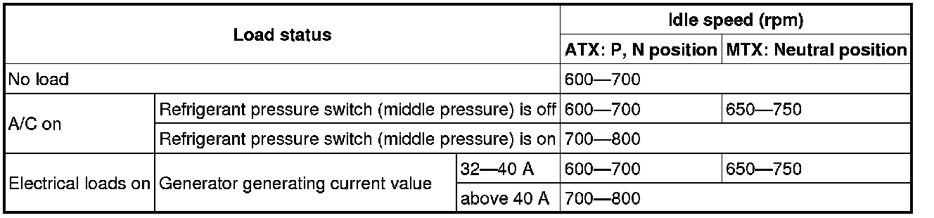 Idle speed (ATX: P, N position , MTX: Neutral position)