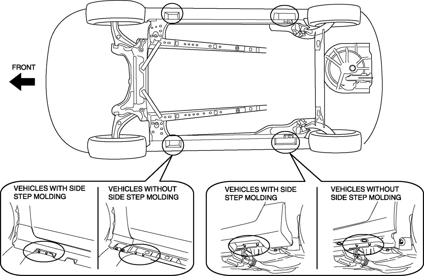 - For vehicles with side step molding, be careful not to damage the side step molding by hitting it with auto-lift arms or a safety stand.
