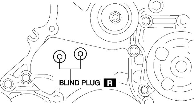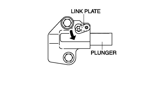 a. Press down the link plate of the chain tensioner from the service hole on the left side using a thin flathead screwdriver (precision screwdriver) as shown in the figure. Then rotate the crank pulley backwards (counterclockwise) with the plunger lock released.