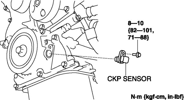 - When replacing the CKP sensor, make sure there is no foreign material on it such as metal shavings. If it is installed with foreign material, the sensor output signal will malfunction resulting from fluctuation in magnetic flux and cause a deterioration in engine control.