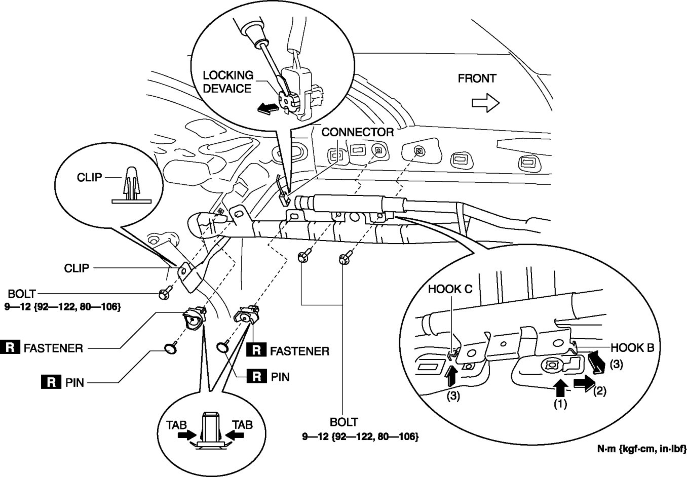 11. Pull hook D in the direction shown by the arrow and remove it from the body.