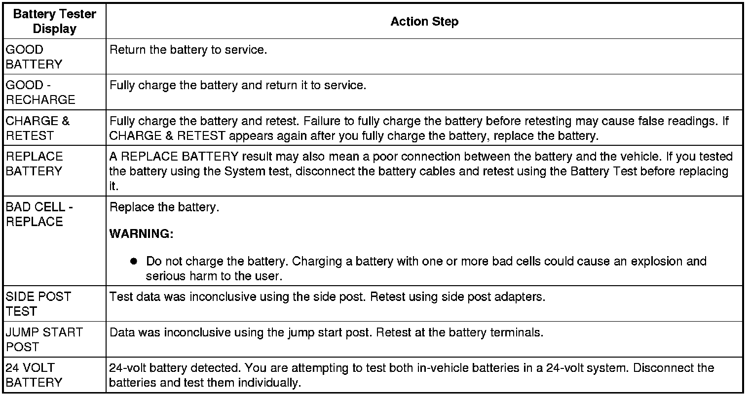 Battery: Testing and Inspection
