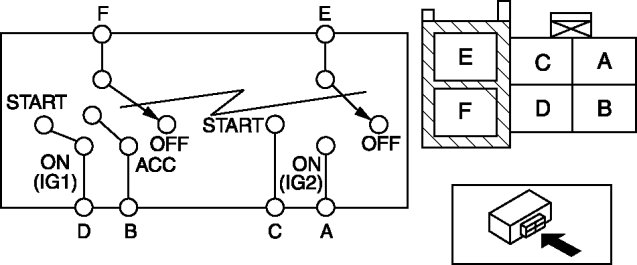 - If not as indicated in the table, replace the ignition switch.