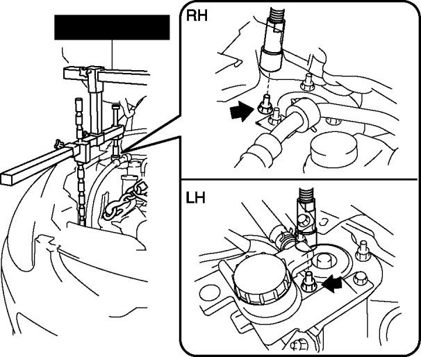 - When attaching the SST in the engine rear side, install a suitable nut between the engine and the SST.