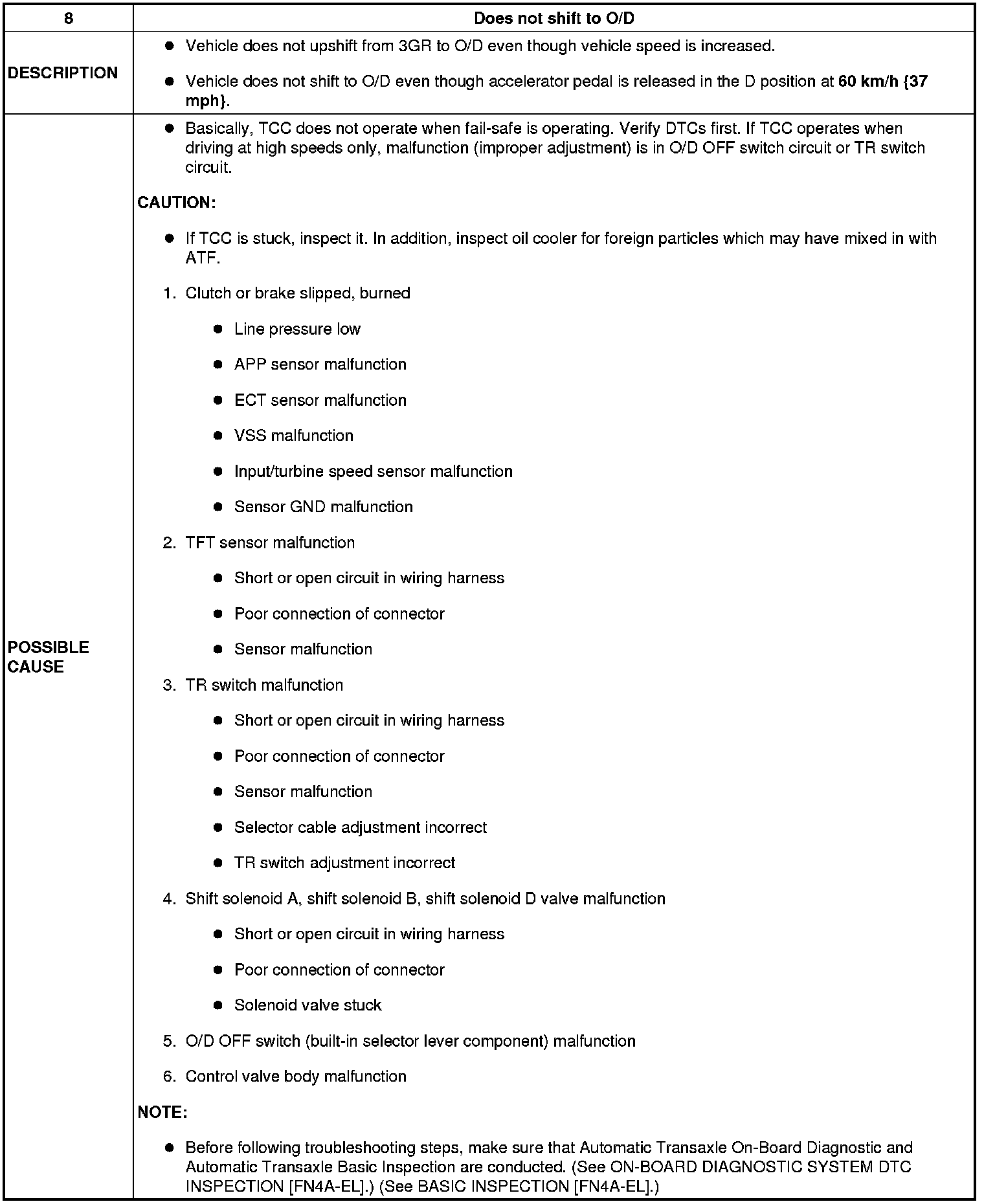 NO.8 DOES NOT SHIFT TO O/D [FN4A-EL]