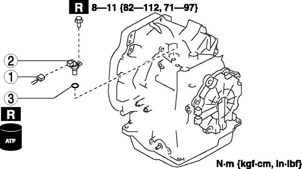 - A sealant coating is applied to the input/turbine speed sensor installation bolt to prevent oil leakage from the installation bolt hole which passes through the component.