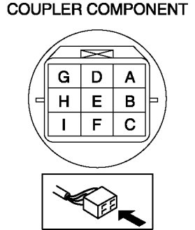 3. Apply battery positive voltage to the coupler component terminal D and battery negative voltage to terminal I, and verify that operating sound is heard from solenoid valve.
