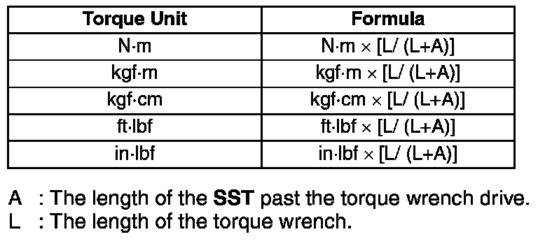 - When using a torque wrench-SST or equivalent combination, the written torque must be recalculated due to the extra length that the SST or equivalent adds to the torque wrench.