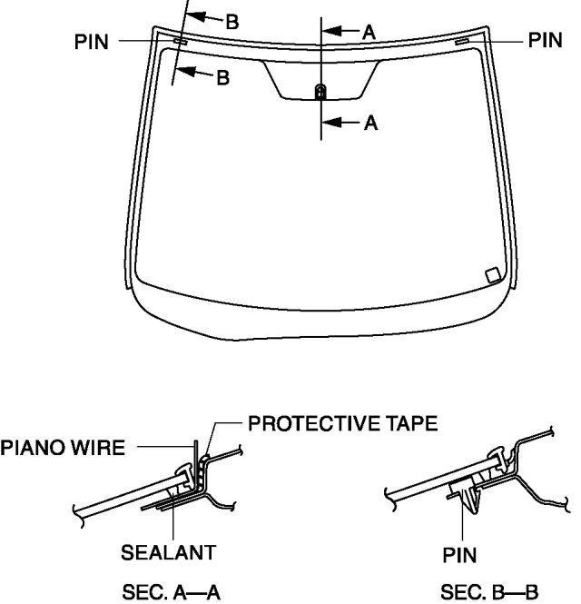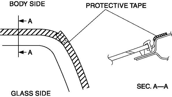 - Before removing the windshield from the body, mark the position of the windshield by affixing tape to the windshield and body panel.